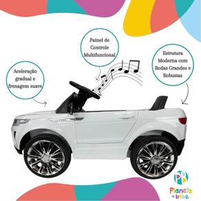 Carro Elétrico Infantil Mini SUV Rover Branco - Zippy Toys Proporcione uma experiência emocionante para o seu pequeno com o Mini SUV Rover da Zippy Toys Imagine a sensação de pilotar um SUV em alta velocidade, com o vento no rosto Com essa super máquina, você vai marcar a infância do seu filho com momentos únicos, cheios de adrenalina e diversão de verdade. Com muito estilo, segurança e interatividade, ele tem um visual moderno inspirado nos modelos de luxo, perfeito para conquistar o coração dos pequenos. Oferece uma experiência completa de direção com duas maneiras de brincar: a criança pode pilotar sozinha como um verdadeiro motorista ou o adulto pode assumir o controle através do controle remoto. O carro conta com botão liga/desliga, botões de frente e ré, e volante com buzina e 4 músicas diferentes, estimulando os sentidos e tornando a brincadeira ainda mais divertida. Os faróis acendem e as portas abrem de verdade, tornando a experiência ainda mais realista Pensado com foco total na segurança, o Mini SUV é equipado com retrovisores, cinto de segurança subabdominal e assento super confortável. O pedal possui aceleração gradual e frenagem suave, garantindo conforto e proteção durante o uso. Mais do que um brinquedo, este carrinho contribui para o desenvolvimento das habilidades motoras e da coordenação das crianças. Ao conduzir o carro, elas praticam noção de espaço e tomada de decisão, tudo isso de forma lúdica e ao ar livre. Cada volta e cada aceleração ajudam a construir confiança e independência. Disponível nas cores: Branco, Cinza e Rosa, o Mini SUV Rover da Zippy Toys garante diversão de verdade para todas as aventuras da infância Principais Características: - Idade recomendada: a partir de 3 anos - Peso máximo suportado: 30 kg - Volante com Buzina e 4 músicas diferentes - Botão com 2 marchas frente e ré - Modo manual e modo controle remoto - Botão liga/desliga - Alto desempenho e durabilidade - Pedal de aceleração manual - Aceleração gradual e frenagem suave - Faróis que acendem - Bateria recarregável de 6V - Cinto de segurança subabdominal - Estrutura e rodas robustas - Assento confortável com encosto - Portas que abrem de verdade - Retrovisores funcionais - Acompanha controle remoto - Disponível nas cores: Branco, Cinza e Rosa Especificações Técnicas: - Conteúdo da Embalagem: 1 Carro Elétrico Infantil Mini SUV Rover BR - Zippy Toys + Manual de Instruções. - Dimensões do Produto AxLxP : 42,0 x 47,0 x 86,0cm - Alimentação: Bateria Recarregável 6v - Peso do Produto: 7,500kgs - : 90 dias Contra Defeitos de Fabricação Pelo Fabricante - Certificação: 004499/2023 - Código do Fabricante: 11516 - EAN: 7908216139541 - Marca: Zippy Toys Imagens Meramente Ilustrativas. As cores e estampas podem variar de acordo com o lote do fabricante. Homologação Inmetro: IP-BRI-0010/2022-76
