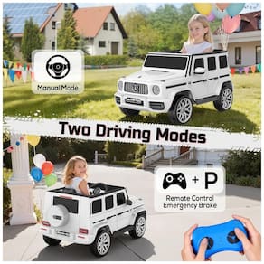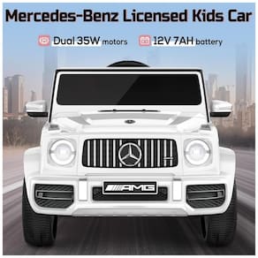 O carro elétrico infantil licenciado Mercedes-Benz G63 garante experiência premium, autenticidade e segurança para crianças de 3 a 5 anos. Equipado com bateria de 12V 7Ah, dois motores de 35W, velocidade máxima de 5 km/h, partida suave, portas com janelas altas e trava, sistema de amortecedores traseiros e cintos de segurança.