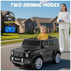 O carro elétrico infantil licenciado Mercedes-Benz G63 garante experiência premium, autenticidade e segurança para crianças de 3 a 5 anos. Equipado com bateria de 12V 7Ah, dois motores de 35W, velocidade máxima de 5 km/h, partida suave, portas com janelas altas e trava, sistema de amortecedores traseiros e cintos de segurança.