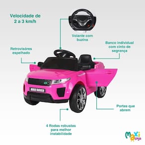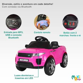 Carro Elétrico Infantil Mini Maxi Rover 2 Marchas Frente/Ré Bateria 6v Controle Remoto e Conexão Bluetooth Maxi Toys