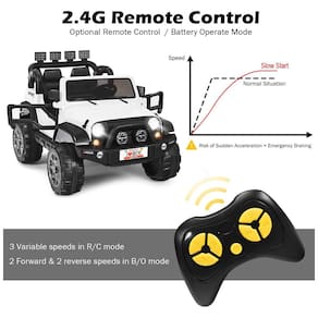 Caminhão de 2 lugares real Projetado com 2 lugares com cinto de segurança, este passeio de 12V em caminhão foi projetado para 2 crianças com 3 anos ou mais para brincar e aproveitar a emoção de dirigir juntas. E luzes LED, portas duplas magnéticas com trava, funções para frente e para trás e a função de ajuste de velocidade de três níveis proporcionam ao seu filho uma experiência real de direção. Modos de condução de dupla via As crianças podem dirigir esses carros movidos a bateria de 2 lugares por conta própria, manipulando o interruptor de velocidade e o pedal, oferecendo às crianças uma experiência de condução autêntica. Os pais também podem operar o passeio em caminhão com controle remoto para desfrutar de um feliz tempo entre pais e filhos. Melhor ainda, o controle remoto está equipado com 3 modos de velocidade alteráveis e um botão de emergência para garantir a segurança das crianças. Iniciar lentamente para garantir a segurança A tecnologia de partida e parada lenta protege efetivamente seus pequenos da aceleração não intencional e da frenagem abrupta. Com cintos de segurança e portas com trava dupla, as crianças podem sentar se firmemente no carro. Além disso, há um corrimão de segurança no lado do passageiro, adicionando segurança extra. Projeto durável e humanizado Feito de ferro e material PP estritamente selecionados, este passeio de 2 lugares em caminhão é resistente e resistente ao desgaste o suficiente para suportar capacidade de peso de até 50 kg. Enquanto isso, quatro rodas têm um desempenho impressionante em resistência ao deslizamento e absorção de choques, tornando esses carros elétricos para 2 crianças adequados para serem s em cimento, estrada de asfalto, piso de madeira. A roda e o capuz adicionais podem ser abertos como caixas de zenamento para brinquedos. Presente perfeito para crianças Vem com a função de contar histórias e tocar música, este passeio de 2 lugares em caminhão é um maravilhoso presente de aniversário ou Natal para meninos ou meninas, e esse passeio de 12V em caminhão pode chegar a aproximadamente 3 6 km, h, para que eles fiquem emocionados em fazer uma aventura. Dimensão geral: Aproximadamente 123,19 x 80,01 x 80,01 centímetros Marca: Não Informado