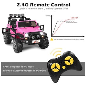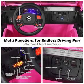 Caminhão de 2 lugares real Projetado com 2 lugares com cinto de segurança, este passeio de 12V em caminhão foi projetado para 2 crianças com 3 anos ou mais para brincar e aproveitar a emoção de dirigir juntas. E luzes LED, portas duplas magnéticas com trava, funções para frente e para trás e a função de ajuste de velocidade de três níveis proporcionam ao seu filho uma experiência real de direção. Modos de condução de dupla via As crianças podem dirigir esses carros movidos a bateria de 2 lugares por conta própria, manipulando o interruptor de velocidade e o pedal, oferecendo às crianças uma experiência de condução autêntica. Os pais também podem operar o passeio em caminhão com controle remoto para desfrutar de um feliz tempo entre pais e filhos. Melhor ainda, o controle remoto está equipado com 3 modos de velocidade alteráveis e um botão de emergência para garantir a segurança das crianças. Iniciar lentamente para garantir a segurança A tecnologia de partida e parada lenta protege efetivamente seus pequenos da aceleração não intencional e da frenagem abrupta. Com cintos de segurança e portas com trava dupla, as crianças podem sentar se firmemente no carro. Além disso, há um corrimão de segurança no lado do passageiro, adicionando segurança extra. Projeto durável e humanizado Feito de ferro e material PP estritamente selecionados, este passeio de 2 lugares em caminhão é resistente e resistente ao desgaste o suficiente para suportar capacidade de peso de até 50 kg. Enquanto isso, quatro rodas têm um desempenho impressionante em resistência ao deslizamento e absorção de choques, tornando esses carros elétricos para 2 crianças adequados para serem s em cimento, estrada de asfalto, piso de madeira. A roda e o capuz adicionais podem ser abertos como caixas de zenamento para brinquedos. Presente perfeito para crianças Vem com a função de contar histórias e tocar música, este passeio de 2 lugares em caminhão é um maravilhoso presente de aniversário ou Natal para meninos ou meninas, e esse passeio de 12V em caminhão pode chegar a aproximadamente 3 6 km, h, para que eles fiquem emocionados em fazer uma aventura. Dimensão geral: Aproximadamente 123,19 x 80,01 x 80,01 centímetros Marca: Não Informado