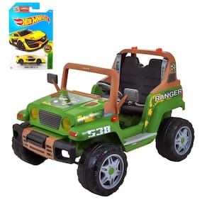 o kit carro elétrico ranger e carrinho hot wheels é perfeito para proporcionar diversão e aventura para as crianças. Com o carro elétrico ranger 538, fabricado pela peg-pérego, e o carrinho hot wheels , da mattel, essa combinação irá garantir uma experiência inesquecível. O carro elétrico ranger 538 é um mini veículo motorizado com bateria de 12 volts, ideal para crianças a partir de 3 anos. Ele possui 2 marchas para frente, marcha à ré e atinge velocidade de até 6,5 km/h. Além disso, conta com um assento confortável para duas crianças, cinto de segurança, acelerador e freio em um único pedal, buzina e rodas adequadas para diversos tipos de superfícies. O carregador bivolt está incluído na embalagem. O carrinho hot wheels é um modelo exclusivo da famosa marca hot wheels, que fabrica carrinhos desde 1968. Com composição em metal e plástico, esse carrinho é seguro e recomendado para crianças a partir de 3 anos. O modelo será enviado aleatoriamente, conforme disponibilidade. Medidas do produto: - peso: 24 kg - altura: 81 cm - largura: 88 cm - comprimento: 124,5 cm