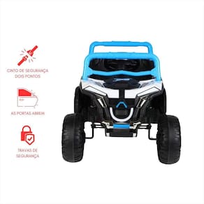 Aventura com segurança e estilo para os pequenos pilotos Transforme os passeios das crianças em verdadeiras expedições off-road com o utv elétrico infantil wild racer com um design robusto, moderno e esportivo, este mini quadriciclo 12v proporciona diversão com segurança para crianças de até 30kg.