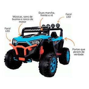 O carro elétrico jipe utv 4x4 azul 12v da zippy toys é um veículo off-road elétrico Projetado para crianças aventureiras que desejam explorar o mundo ao ar livre. Com um design robusto, elegante e moderno, este carro elétrico é o sonho de toda criança.