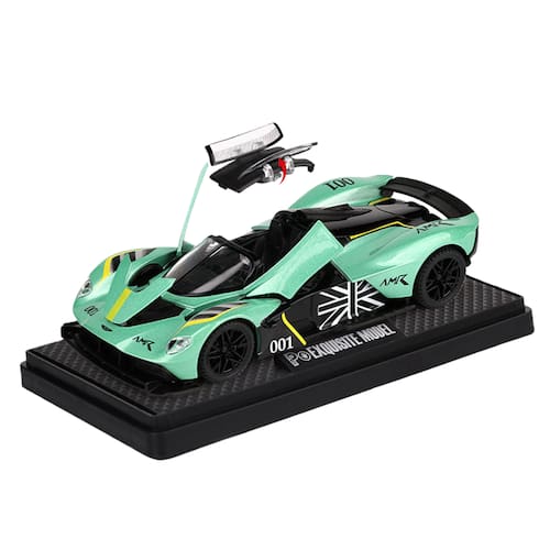 Material: liga de zinco, resina ABS, componentes eletrônicos Cor: verde Tamanho da embalagem: 16 x 6,8 x 4 cm Peso da embalagem: 0,3 kg Lista de embalagem: 1 x Toy Car Design realista de valquíria em escala 1:32: este modelo de carro esportivo conversível Valkyrie fundido é feito em escala 1:32 com detalhes intrincados, incluindo a capota conversível, tornando-o perfeito para colecionadores de carros e crianças. Características de som e luz: Equipado com efeitos de som e luz, este carrinho de brinquedo adiciona emoção e realismo, criando uma experiência envolvente para as crianças durante as brincadeiras ou como parte de uma coleção de displays. Ação movida por fricção: As rodas movidas a fricção permitem fácil movimentação, portanto, não são necessárias baterias. Basta empurrar o carro e ele rola suavemente, proporcionando horas de diversão para crianças pequenas. Construção durável: feito de liga de zinco de alta qualidade, resina ABS e componentes eletrônicos, este carrinho de brinquedo foi construído para durar, resistindo ao desgaste, mantendo sua cor verde detalhada e design elegante. Perfeito para brincar e exibir: com seu tamanho compacto de 16 x 6,8 x 4 cm e um peso de 300 g, este carrinho de brinquedo é perfeito para as crianças brincarem ou como uma adição vibrante a qualquer coleção de carros em exibição.