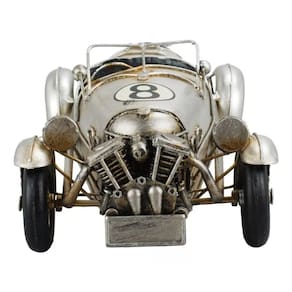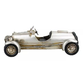 Enfeite decorativo em forma de carro esportivo prateado com 10 x 30 x 14 cm de dimensão, detalhes e cores muito realista. Material: metal; Atenção: este produto tem apenas função decorativa, não é um brinquedo e nem um carro de verdade!