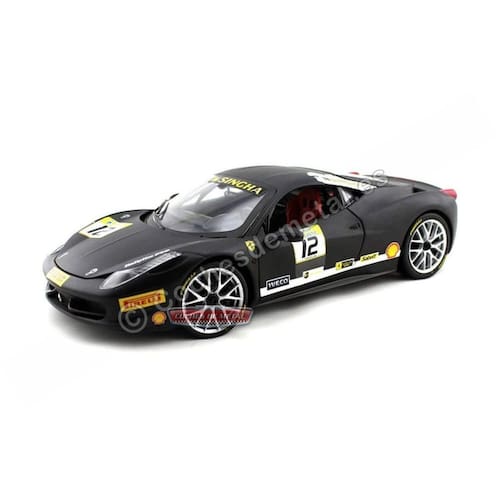- Novo modelo de carro em escala 1:18 do Ferrari 458 Challenge Matt Black #12, modelo de carro fundido sob pressão da Hot Wheels. Pneus de borracha. Caixa nova.