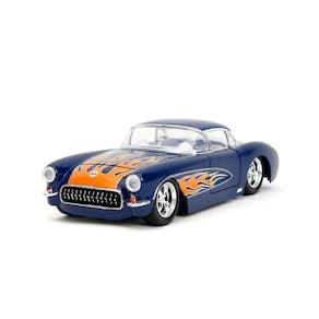 Carro fundido sob pressão Jada Big Time Muscle 1:24 1957 Chevrolet Corvette, brinquedos para crianças e adultos (azul escuro/chamas)