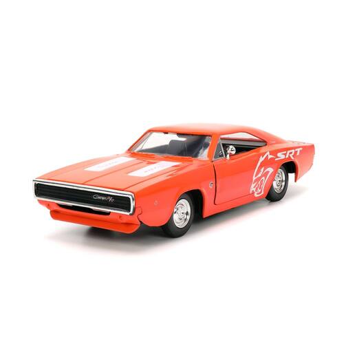 - Carro fundido sob pressão Dodge Charger Big Time Muscle 1:24 1968 (laranja)