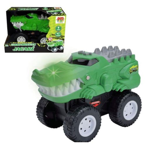 Carro Monster roda livre em formato de Jacaré!Com luz e som!Pura diversão.IDADE RECOMENDADA: Acima de 03 (três) anosCONTEÚDO DA EMBALAGEM: 01 carro Monster JacaréOUTRAS INFORMAÇÕES:LuzSomRoda LivreUtiliza 03 baterias AG13 (incluídas)Medidas: 16,8 cmMaterial: Plásticos ABS,PS e PP