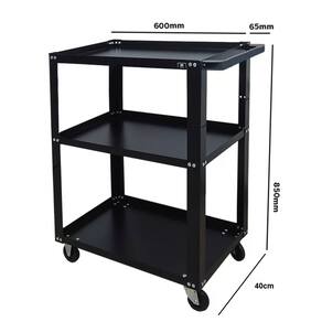 Carro p/ Ferramentas Aberto Dark PRESTO de 3 Bandejas, feito em chapa de aço com baixo teor de carbono, com tratamento químico fosfatizante e antiferruginoso e pintura eletrostática a pó, o que garante uma proteção eficaz contra corrosão e um acabamento de alta qualidade.