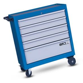 Carrinho de Ferramenta com 1 Bandeja e 5 Gavetas é fabricado em chapas de aço carbono resistentes, recebe tratamento de superfície anticorrosivo e finalmente recebe um acabamento de tinta eletrostática a pó.