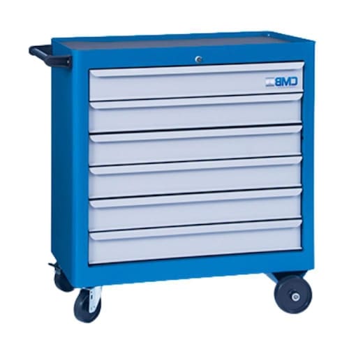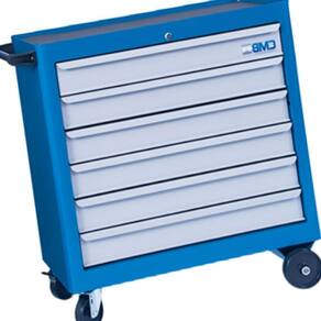 Carrinho para Ferramentas com 1 Bandeja e 6 Gavetas é fabricado em chapas de aço carbono resistentes, recebe tratamento de superfície anticorrosivo e finalmente recebe um acabamento de tinta eletrostática a pó.