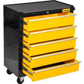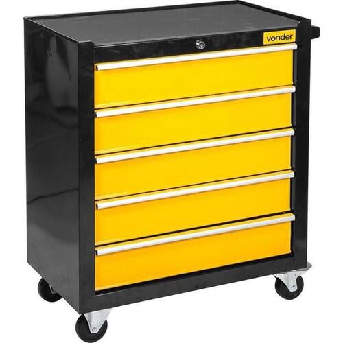 Ref. Fornecedor: 3599050050 Marca: Vonder Conteúdo da Embalagem: 1 Carro para ferramentas Destaques e diferenciais: Possui estrutura reforçada com 5 gavetas em metal, fechamento com chave, 2 rodízios fixos, 2 rodízios giratórios com freio e alça para movimentação. Aplicações e dicas de uso: Indicado para transporte de ferramentas e afins Características Técnicas: Altura do carrinho para ferramentas: 75,0 cm Largura do carrinho para ferramentas: 33,0 cm Comprimento do carrinho para ferramentas: 62,0 cm Material do carrinho para ferramentas: Aço carbono Capacidade de carga do carrinho para ferramentas: 80 kgf