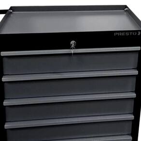 O Carro para Ferramentas Profissional da Presto com 5 gavetas é robusto e funcional. Tem capacidade de carga de até 250kg distribuídos e permite o acondicionamento e transporte, já que conta com 4 rodízios de 4?, sendo 2 fixos e 2 giratórios com freio.