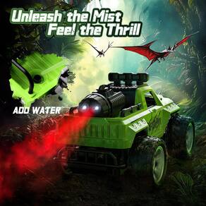 - Incrível impulso de jato de névoa: este elegante brinquedo de caminhão de dinossauro é projetado para trazer diversão infinita para crianças que amam aventuras! Equipado com uma função de spray de névoa fria, basta adicionar água para criar um efeito turbo de névoa giratória. Combinado com luzes LED vermelhas, o spray se transforma em um impulsionador de foguete turboalimentado, levando a emoção a um nível totalmente novo!