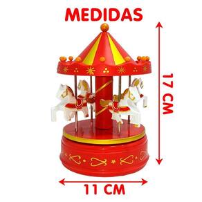 Características Gerais do Produto: - Material: Ferro - Modelo: Carrossel Musical - Cor: Vermelho - Dimensões aproximadas: Altura 17cm x Diâmetro 11cm Garantia: - Garantia do site - 1 Mês