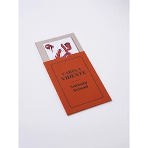 Em “Carta à vidente”, é como se o autor “estivesse nu” diante da cartomante que visita, cujos olhos “percorrem vertiginosamente” as fibras de seu corpo e extirpam o mal do pecado. Artaud coloca-se aberto ao “abraço do mais-querer querendo mais amar”. A carta foi publicada na revista “La Révolution Surréaliste” (no 8, dez. 1926), um mês depois de Artaud ser excluído do grupo surrealista de Paris por divergências políticas – a reconciliação com André Breton ocorreu somente em 1935. Esses dois, conforme assinalou o poeta português Mário Cesariny, “são duas grandezas e revoluções – no sentido astrofísico – complementares. O que falta a um, sobra ao outro”. O surrealista brasileiro Sergio Lima aponta que a “Carta à Vidente” de Artaud seria um “reenvio expresso” à “Carta do Vidente” de Arthur Rimbaud – escrita em 1871, mas publicada posteriormente — e chama a atenção para “uma certa linhagem da fascinação” presente entre elas, no texto “As cartas do vidente e vidências das cartas de amor”, que completa a edição. O livro tem cuidado especial com encadernação em sanfona, que, retirada do estojo, abre-se como leque de cartas. Os dois textos espelham-se como duplos de uma moeda giratória, à própria sorte do leitor. Intercalando as palavras do surrealista francês, os desenhos do português António Gonçalves dialogam com a corporeidade transbordante que se derrete por páginas (des)pautadas. Tradução: Bruno Costa Ensaio: Sergio Lima Ilustrações: António Gonçalves