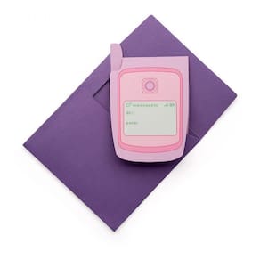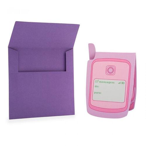 Arte inspirada na estética dos anos 2000 (Y2K), o cartão imita um celular de flip (daqueles que abre e fecha) e o seu recadinho que você vai escrever simula aquele sms, pra sua grande amiga ou amigo. Incrível, né?!