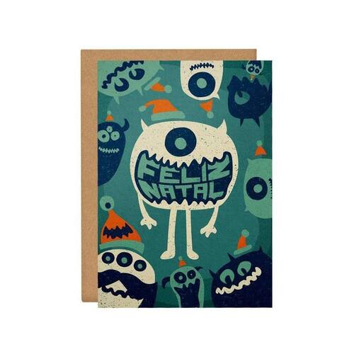 Cartão Christmas Monsters Tpc em Papel Texturizado 250G 21X14,8CM com Envelope Kraft, Adesivo e Saquinho Plástico