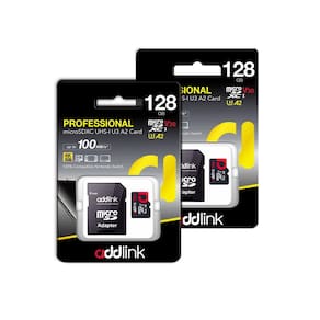 addlink Cartões de memória V30 128GB 2 pacotes profissionais microSDXC UHS-I U3 A2 com desempenho incrível para smartphone, tablet e câmera. Capture vídeos 4K Ultra HD e Full HD e desfrute de velocidades de transferência de até 100 MB/s para que você possa fotografar como um profissional e ainda experimentar a capacidade de resposta de classe mundial do seu telefone. As classificações UHS-I Speed Class 3 (U3) e Video Speed Class 30 (V30) significam que seus vídeos podem atender aos mais altos padrões de resolução de hoje. Para câmeras: Nikon SLR D5600 D500 D5500 D3200 D7500 D7200 D7100 D5100 D3100 D5300 D5200 D5300 D3400 D3300 COOLPIX P9 00 P6 Câmera digital 10 P600 P530 P520 P510 L840 L830 L820 L810 L330 L310, DL24-500, Canon EOS Rebel SL2, T7i, T6, T6s, T5, T5i, T4i. SL1, 77D, 80D, 70D, 5D Mark IV, 7D Mark II, 6D, XT, 1DX Mark II, Fujifilm X-T2, FGX 50s, Sony Alpha a5000, cyber-shot DSC-RX10 IV, RX10M II, A7, A200K, a99ii, a68, a77II, a390, a350, a55, - ?Especificação?addlink microSDXC com interface UHS-1 atende aos padrões U3 e V30 A2. Velocidades de leitura/gravação de até 100 MB/45 MB/s. Perfeito para vídeos UHD 4K - ?Compatibilidade?Compatível com Nintendo Switch, Fire kits Edition, tablets Fire, Chromebooks, drones 4K, câmeras digitais, câmeras Dash, câmeras de segurança e muito mais (alguns dispositivos podem exigir pré-formatação com um PC, consulte os manuais do dispositivo) - ?Confiável e durável? À prova de queda/choque, à prova de água/poeira, à prova de estática e raios X - ?Pacote e garantia?Adaptador de tamanho completo e garantia limitada de 5 anos