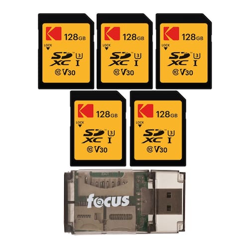 Para gravação de vídeo 4K Ultra HD e gravação contínua em alta velocidade, o cartão de memória Kodak UHS-I U3 V30 SDXC oferece uma capacidade de armazenamento de 128 GB para todas as suas necessidades.