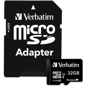 Verbatim Cartão de memória microSDHC premium de 32 GB com adaptador, UHS-I V10 U1 Classe 10, preto (44083) - Classe de velocidade de vídeo V10 - suporta gravação Full HD (1080p) - Interface UHS-I, classificação de velocidade U1 - Velocidade de leitura de até 90 MB/s - Resistente à água, choque e à prova de temperatura