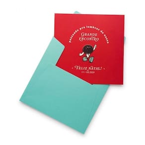 E falando em desejo, na parte interna, tem espaço pra um recadinho especial feito à mão por você, pra uma dedicatória cheia de bons sentimentos e votos pra essa época tão especial que é o natal.
