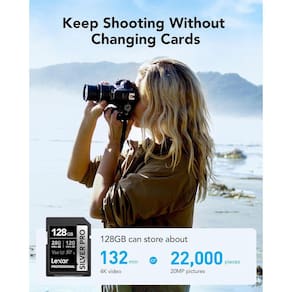 O cartão lexar professional silver pro sdxc uhs-ii oferece até 280 mb/s de leitura e 120 mb/s de gravação para que você possa capturar vídeos impressionantes e imagens estáticas imaculadas - e economizar tempo transferindo e fazendo backup de seus arquivos. Além disso, vem com capacidades para que você tenha espaço para ficar no momento e continuar fotografando.
