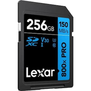 Projetado para câmeras compactas, câmeras dslr de médio alcance e filmadoras hd, o cartão de memória sdxc 800x pro uhs-i de alto desempenho de 256 gb série blue da lexar apresenta uma capacidade de armazenamento de 256 gb e aproveita o uhs -i bus para permitir que você capture e transfira rapidamente vídeos em 4k, full hd e 3d, bem como capturas raw e jpeg. Este cartão pode atingir velocidades máximas de leitura de até 150 mb/s e, graças à sua classificação de classe de velocidade v30, é garantido que as velocidades mínimas de gravação não caiam abaixo de 30 mb/s.
