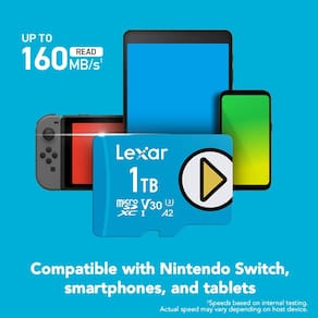 Cartão Micro SD Lexar Play Blue de 1 TB, UHS-I, C10, U3, V30, A2, 4K, cartão de memória microSDXC de até 160 MB/s, armazenamento expandido para Nintendo-Switch 1, dispositivos de jogos, smartphones, tablets (LMSPLBL001T-BNNNU)