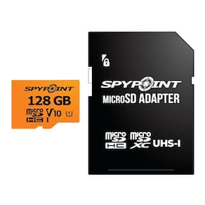 Armazene e capture todas as suas aventuras ao ar livre com o cartão microSD Spypoint de 128 GB. Construído para câmeras de trilha e condições adversas, ele oferece velocidade confiável de Classe 10 e amplo armazenamento para milhares de fotos e horas de vídeo