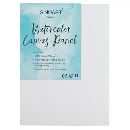 Especialista em materiais artísticos a Sinoart desenvolveu um cartão telado para Aquarela, projetado especialmente para aquarela e outras técnicas aguadas, superfície especialmente preparada com tripla camada de gesso e papel para aquarela 100% algodão com 250 gramas. Leve, prático e fácil de transportar, este cartão é recomendado para o artista que deseja expor ou manter a obra em seu estado do suporte do cartão, o que proporciona possibilidades iguais à uma tela de pintura.