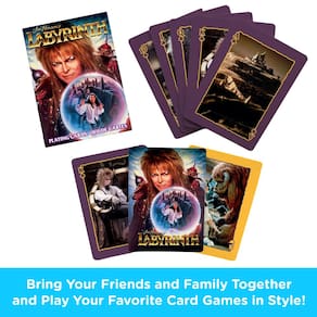 - BARALHO DE CARTAS DE LABIRINTO: Jogue seus jogos de cartas favoritos com amigos e familiares ao se juntar a Sarah, Jareth e ao Rei Goblin neste baralho de cartas com tema de labirinto oficialmente licenciado, retratando 52 imagens exclusivas do filme