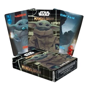 - O baralho mandaloriano de cartas de jogar: jogue seus jogos de cartas favoritos com amigos e familiares com este baralho temático Mandolorian Grogu.