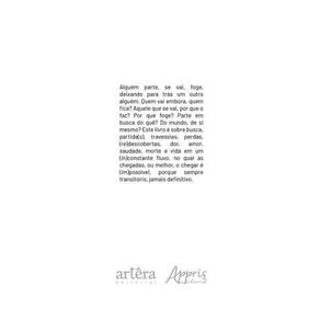 Alguém parte, se vai, foge, deixando para trás um outro alguém. Quem vai embora, quem fica? Aquele que se vai, por que o faz? Por que foge? Parte em busca do quê? Do mundo, de si mesmo? Este livro é sobre busca, partida(s), travessias, perdas, (re)descobertas, dor, amor, saudade, morte e vida em um (in)constante fluxo, no qual as chegadas, ou melhor, o chegar é (im)possível, porque sempre transitório, jamais definitivo. Marca: Não Informado
