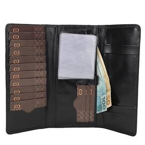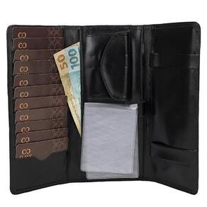 Carteira classe couro grande porta-cheques 023-1 Cor: marrom Carteira classe couro grande porta-cheques 023-1 - 14 compartimentos para cartões - 04 bolsos internos - 06 plasticos para documentos - porta-moedas - porta-cheques - fecho em imã tamanho: 24 x 11 cm lxa Material: couro Garantia: 90 dias contra defeitos de fábrica. Produto nacional, feito artesanalmente.