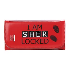 Armazenamento de dinheiro perfeito para verdadeiros detetives de crimes! Licenciada oficialmente pelo programa de sucesso da BBC Sherlock Holmes, esta elegante carteira vermelha diz “I Am Sher Locked”! Espaçosa o suficiente para acomodar cartões e dinheiro, esta carteira mede 6,5" x 3,5". Possui um fecho de pressão e um compartimento com zíper para moedas.