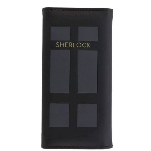 Armazenamento de dinheiro perfeito para detetives de crimes reais! Oficialmente licenciada pelo programa de sucesso da BBC Sherlock Holmes, esta elegante carteira apresenta um design inspirado na casa do detetive, 221B Baker Street! Espaçosa o suficiente para guardar cartões e dinheiro, esta carteira mede 16,5 cm x 9 cm. Possui um fecho de pressão e um compartimento com zíper para moedas.