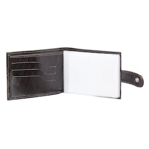 Carteira masculina DH Couros fabricada em couro na cor Café com fechamento por botão de pressão, possui total de 13 compartimentos, sendo: 6 para cartões, 1 para dinheiro e 6 plásticos para documentos.
