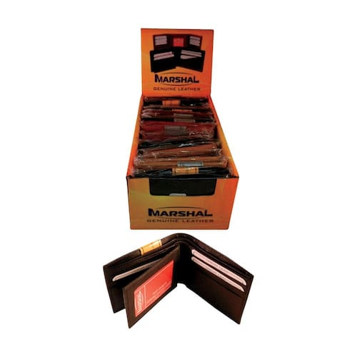 Tamanho: 9,5 “x 5,3" x 4" Cor: Material variado: couro dobrado e dobrado em três partes. Display de bancada.