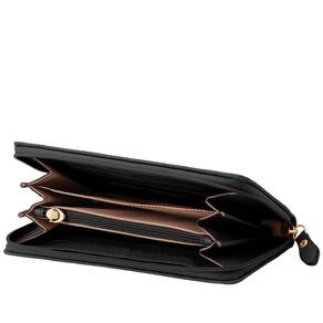 Parte interna: Doze slots para cartões que comportam até 24 unidades considerando utilizar 2 cartões por slot . Cinco compartimentos livres para colocar cédulas e documentos. Bolso centralizado com fechamento em zíper para acomodar moedas.