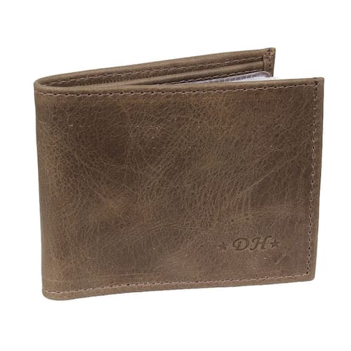 Carteira pequena masculina DH Couros fabricada em couro de alta qualidade na cor Marrom, possui 4 compartimentos internos para cartões, 6 plásticos para documentos e 1 para dinheiro.