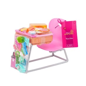 Conjunto de carteira escolar para bonecas de 46cm! Participe da aula e aprenda seus assuntos favoritos com este conjunto escolar Our Generation! Sente suas bonecas na linda mesa rosa e prepare-se para um dia de diversão em sala de aula. Abra a frente da mesa e pegue o conjunto de geometria com a calculadora para resolver as equações do professor durante a aula de matemática. Em seguida, aponte seus lápis e abra o caderno para que suas bonecas possam escrever elas podem até manter uma lista de suas ideias brilhantes no bloco de notas em espiral! Personalize a sua carteira escolar decorando-a com a folha de adesivos e organize os projetos escolares com as 5 pastas coloridas. O grampeador manterá seus papéis bem juntos, e os post-its realmente grudam para criar etiquetas fofas! Cada acessório é perfeitamente dimensionado para caber nas mãos da sua boneca Our Generation, e os detalhes realistas tornam as brincadeiras escolares ainda mais divertidas! Acessórios faz de conta. Bonecas vendidas separadamente.