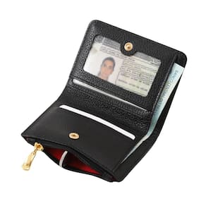 Estrutura do corpo: Construção em couro macio de brilho médio. Forro em sarja vermelha. Logomarca em relevo. Fechamento em botão de pressão. Dimensões fechada: 11 x 09 x 02 cm comprimento x altura x largura Dimensões aberta: 11 x 17 x 01 cm comprimento x altura x largura Peso aproximado: 60 gramas Material: couro