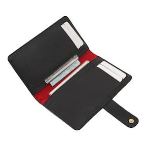 Parte interna: 04 compartimentos livres para cédulas abertas e documentos. 14 slots para cartões que comportam até 28 unidades considerando utilizar 2 cartões por slot .