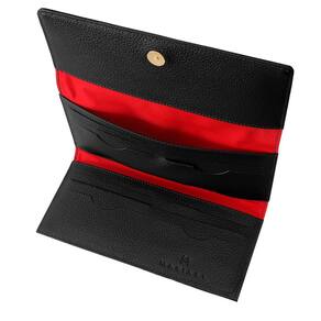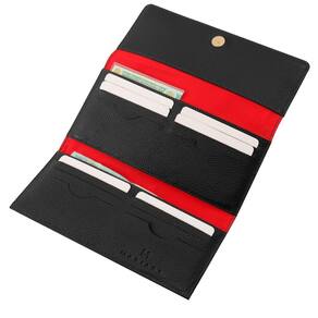 Parte interna: Três compartimentos livres, que podem acomodar Rg, Cnh ou notas abertas. Doze slots para cartões que comportam até 24 unidades considerando utilizar 2 cartões por slot .