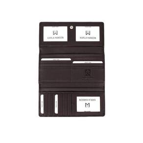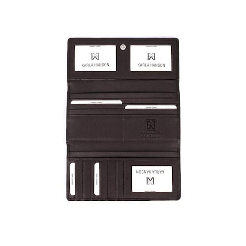 A organização abrangente de nossa carteira feminina Karla Hanson atende à conveniência de uma dobra tripla neste design acessível de fechamento rápido. Durável, mas refinado em couro de seixo texturizado, ele permite que você veja tudo o que está dentro de um piscar de olhos. A tecnologia de defesa RFID integrada protege sua identidade e cartões de crédito.