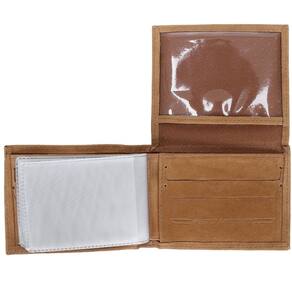 Carteira DH Couros fabricada em couro autêntico Nobuck, possui 6 compartimentos para cartões, compartimento duplo para dinheiro, 6 plásticos para documentos e porta habilitação transparente.